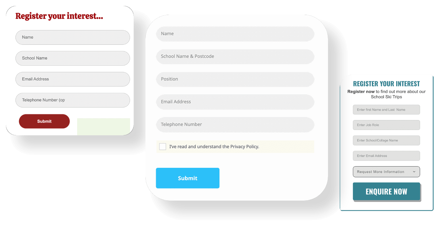 Teachers are really busy – that’s why long contact forms are a simple no-go. To maximise your conversion rate and boost your school lead generation, we make sure our education landing pages only include the fields you actually need.