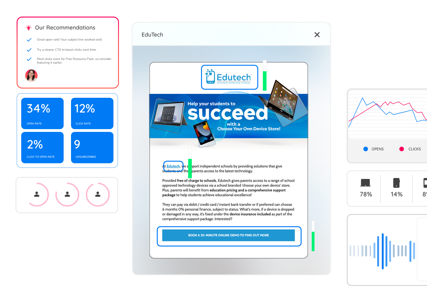 The Post Campaign Success Suite is available as an affordable add-on to your email campaign package. Speak to our team today to find out how you can include it with your next broadcast.