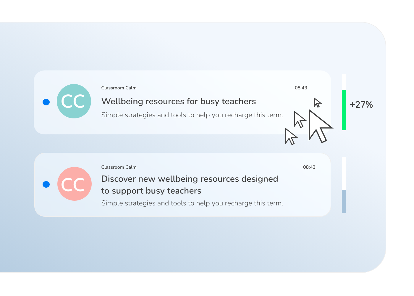 Emails sent between 7–9am achieve nearly double the engagement of post-lunch campaigns. A smaller second peak comes at 3–4pm, once lessons end.