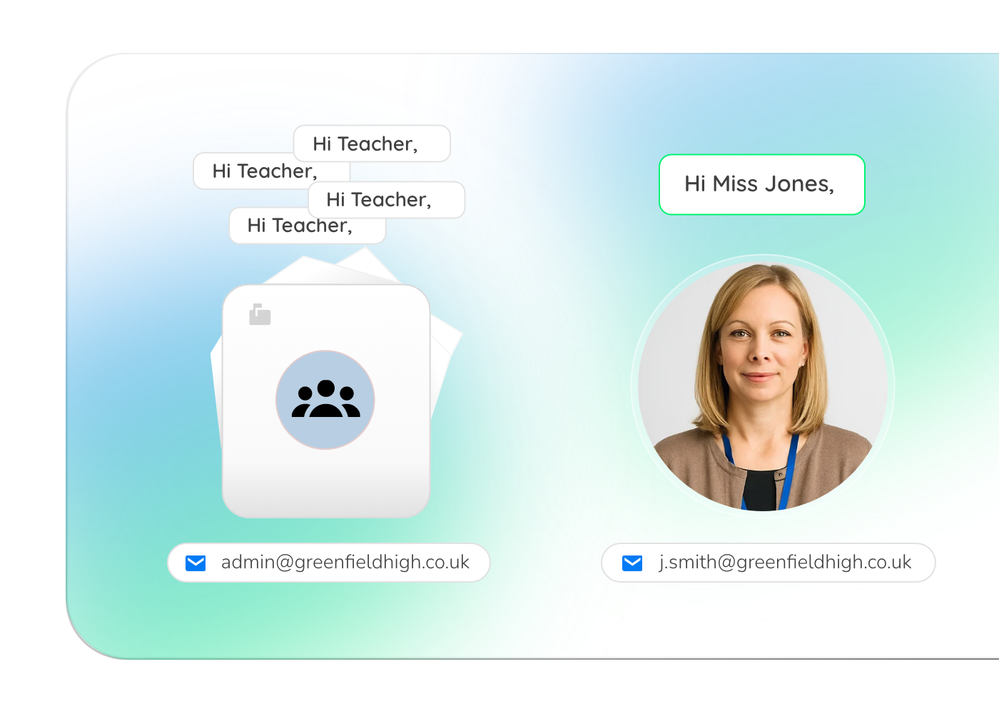 Personalised targeting matters. Staff are far more likely to engage with emails that land in their own inbox than in a shared one.
